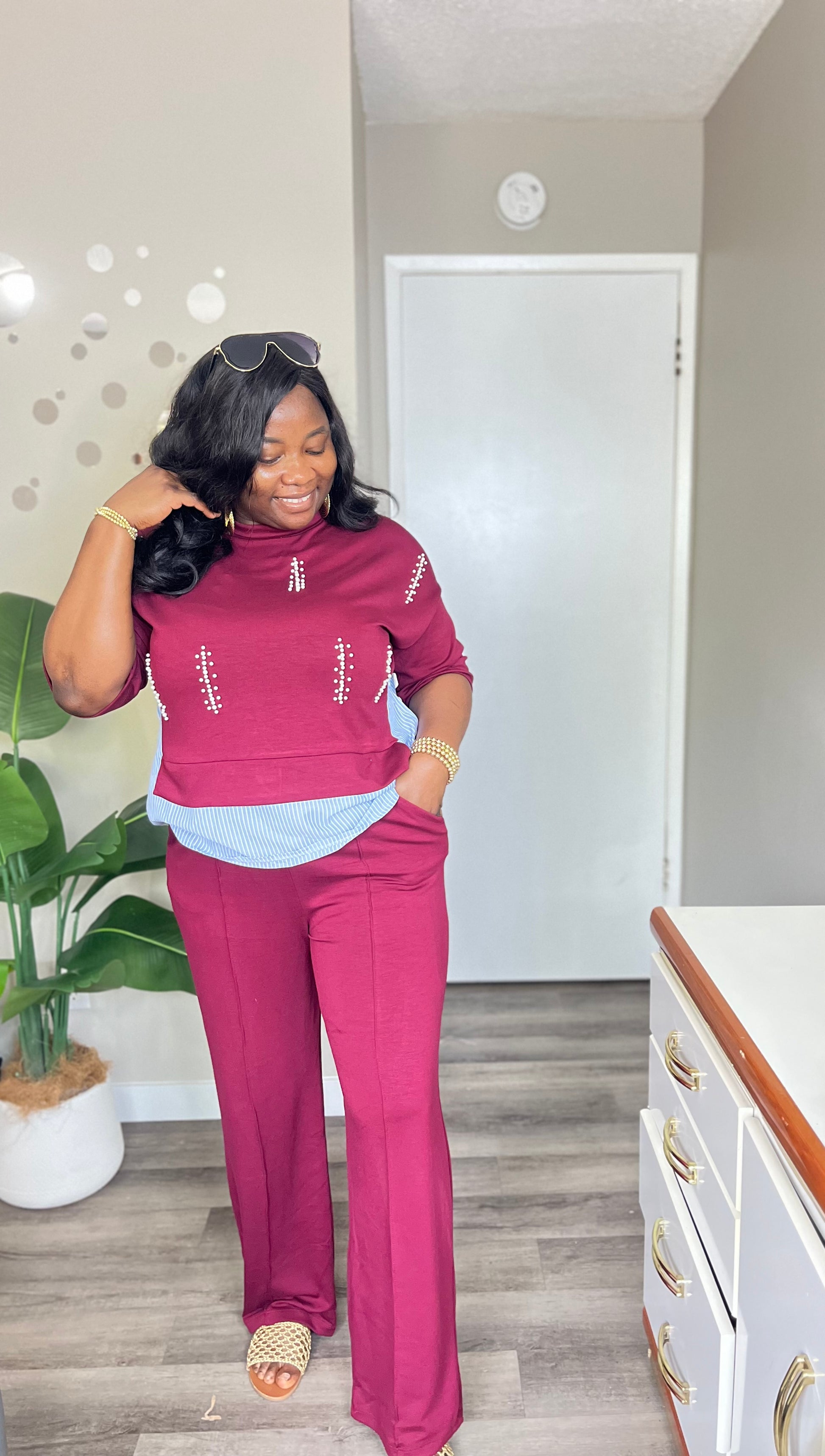 Introducing our Beaded Detail 2pc Set! This playful two-piece set features intricate beading and a striped fabric insert for a unique touch. Perfect for any occasion, this set will have you standing out in style. Upgrade your wardrobe with this quirky and fun ensemble today!