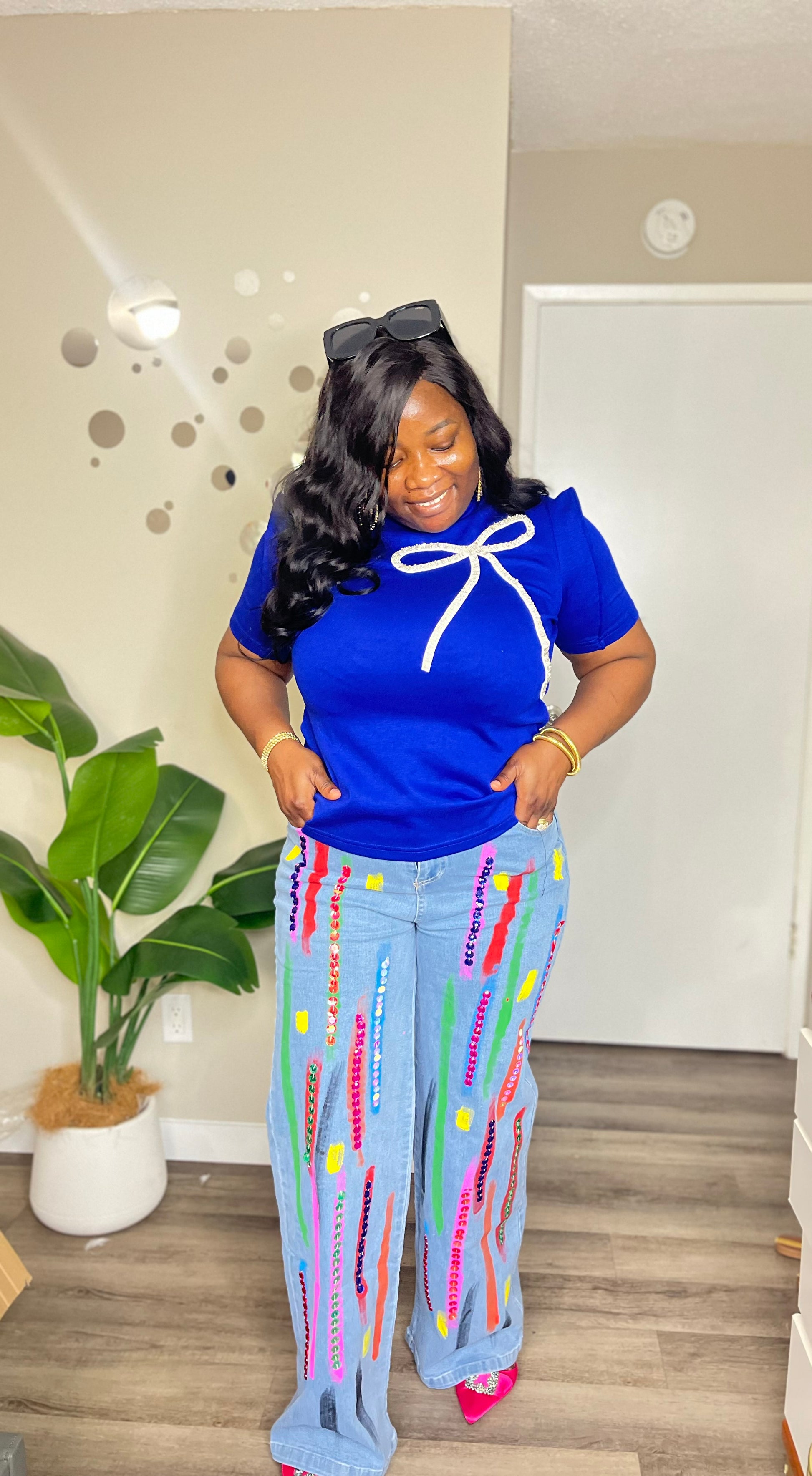 Let's bow down to this playful top! With its charming bow detail, this body top adds a touch of fun to any outfit. Show off your quirky side and turn heads with this unique piece. (Bow down, pun intended.)