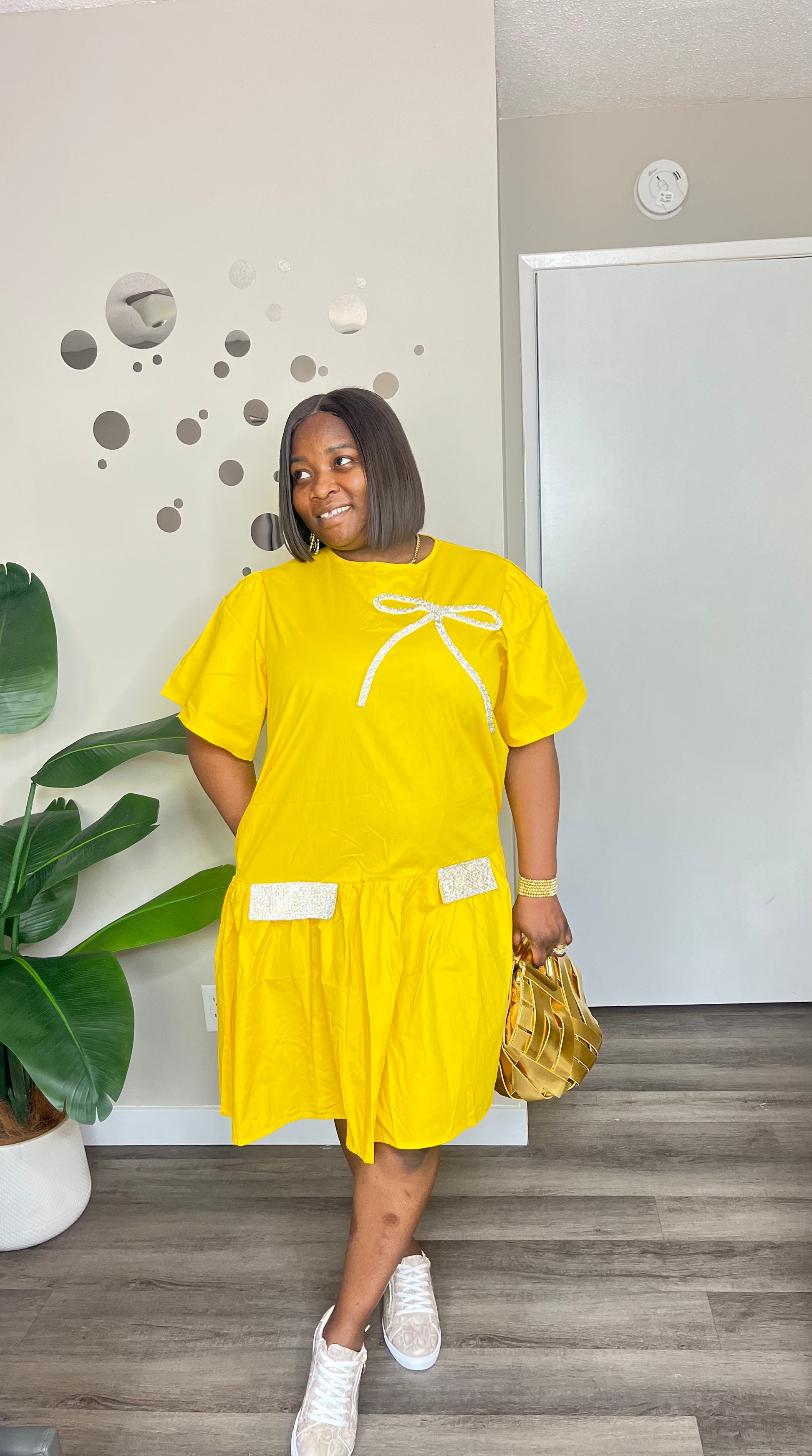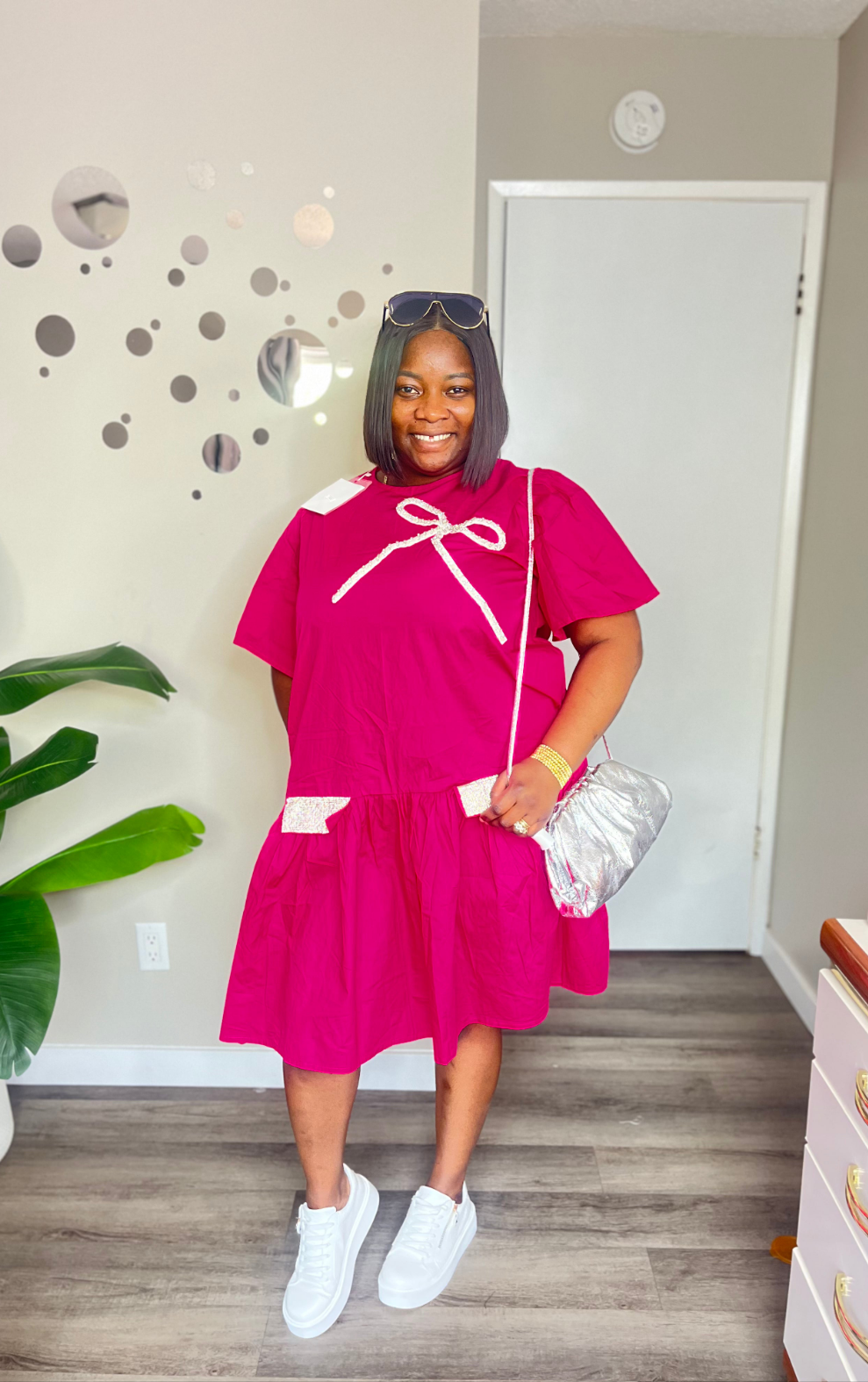 Turn heads with this daring short dress featuring a striking bow detail that adds a bold, playful touch. Perfect for making a confident statement at any event, its sleek silhouette highlights your figure while the eye-catching bow sets you apart from the crowd. Embrace your fearless style with this unforgettable piece.