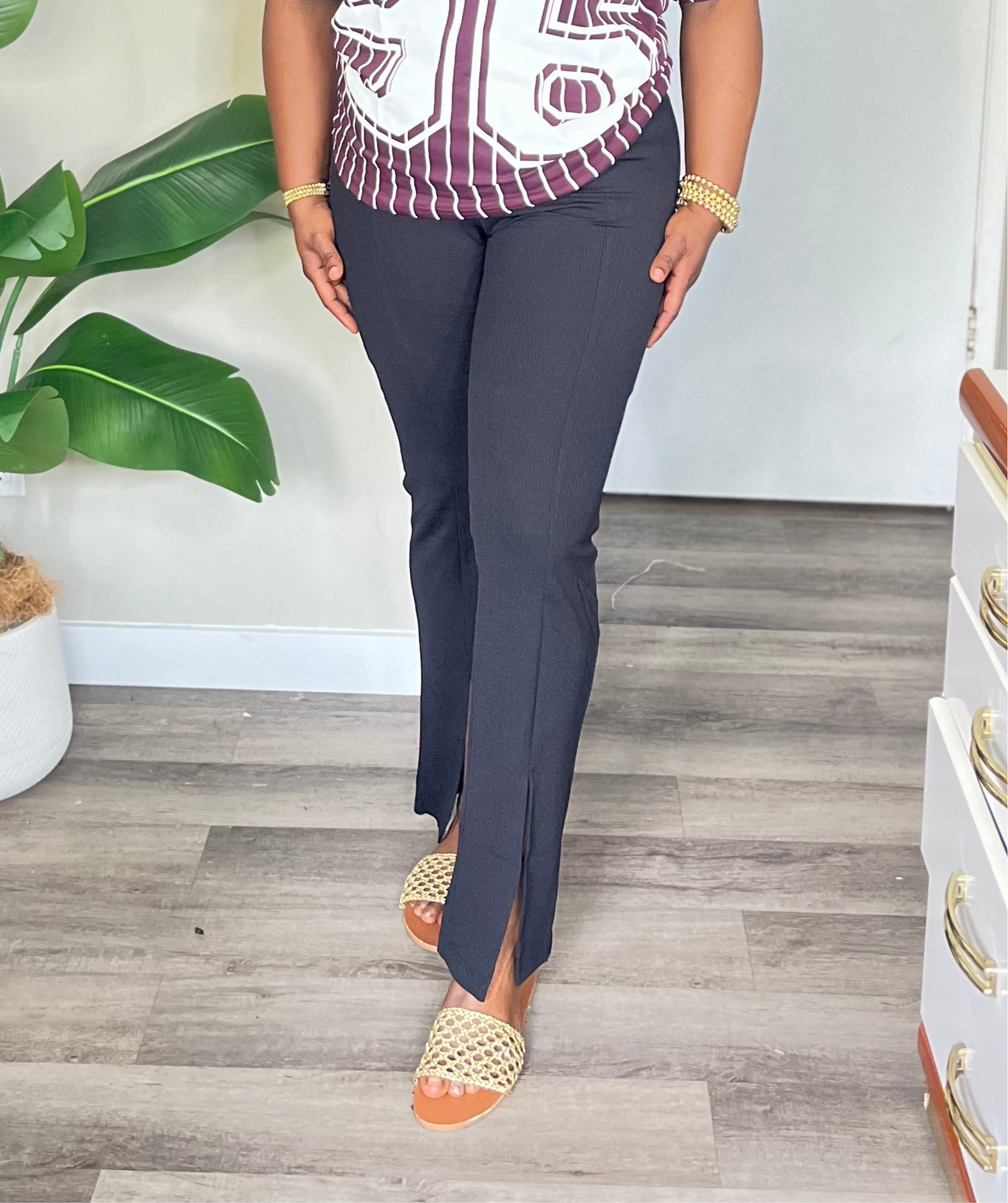 Add a playful touch to your wardrobe with our "Front Slit Pant"! These pants feature a front slit, adding a unique twist to your outfit. Show off some leg and make a statement with these fun and stylish pants. Perfect for any occasion, get ready to turn heads with the "Front Slit Pant".