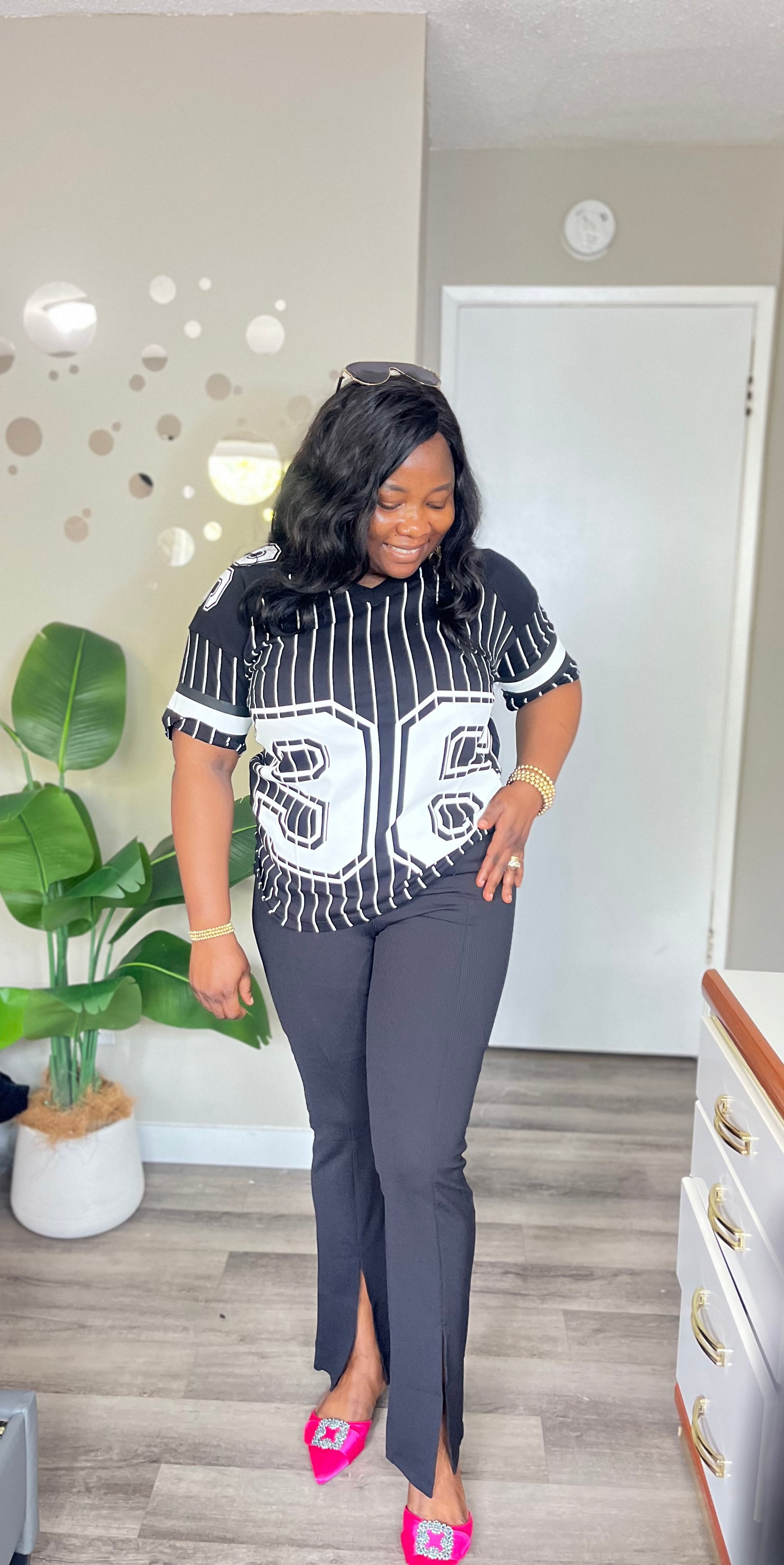 This varsity-style tshirt features a bold stripe design and a prominent "No 96" graphic, making it stand out in any wardrobe. Perfect for those looking for a unique and stylish addition to their casual wear. The striped detailing adds a touch of sporty flair while the number 96 adds a cool and edgy vibe.
