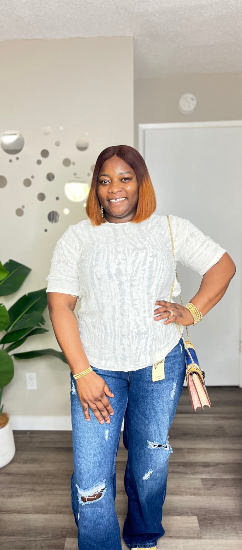 Add an edge of sophistication to your wardrobe with the Ripped Detail Top. Its carefully crafted distressed accents offer a modern, refined look that balances boldness with elegance. Perfect for elevating both casual and dressier outfits with subtle attitude.