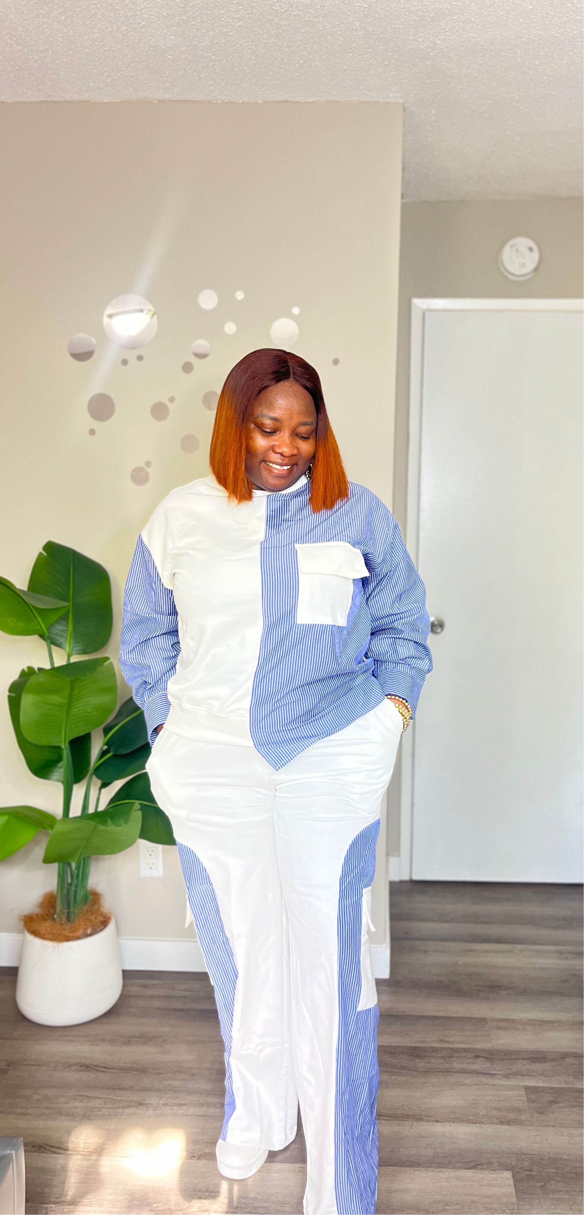 Our Stylish mix and match 2pc set offers versatility and style with its combination of plain and striped patterns. Perfect for creating multiple outfits for various occasions. Made with quality materials for long-lasting wear. Upgrade your wardrobe with this must-have set.