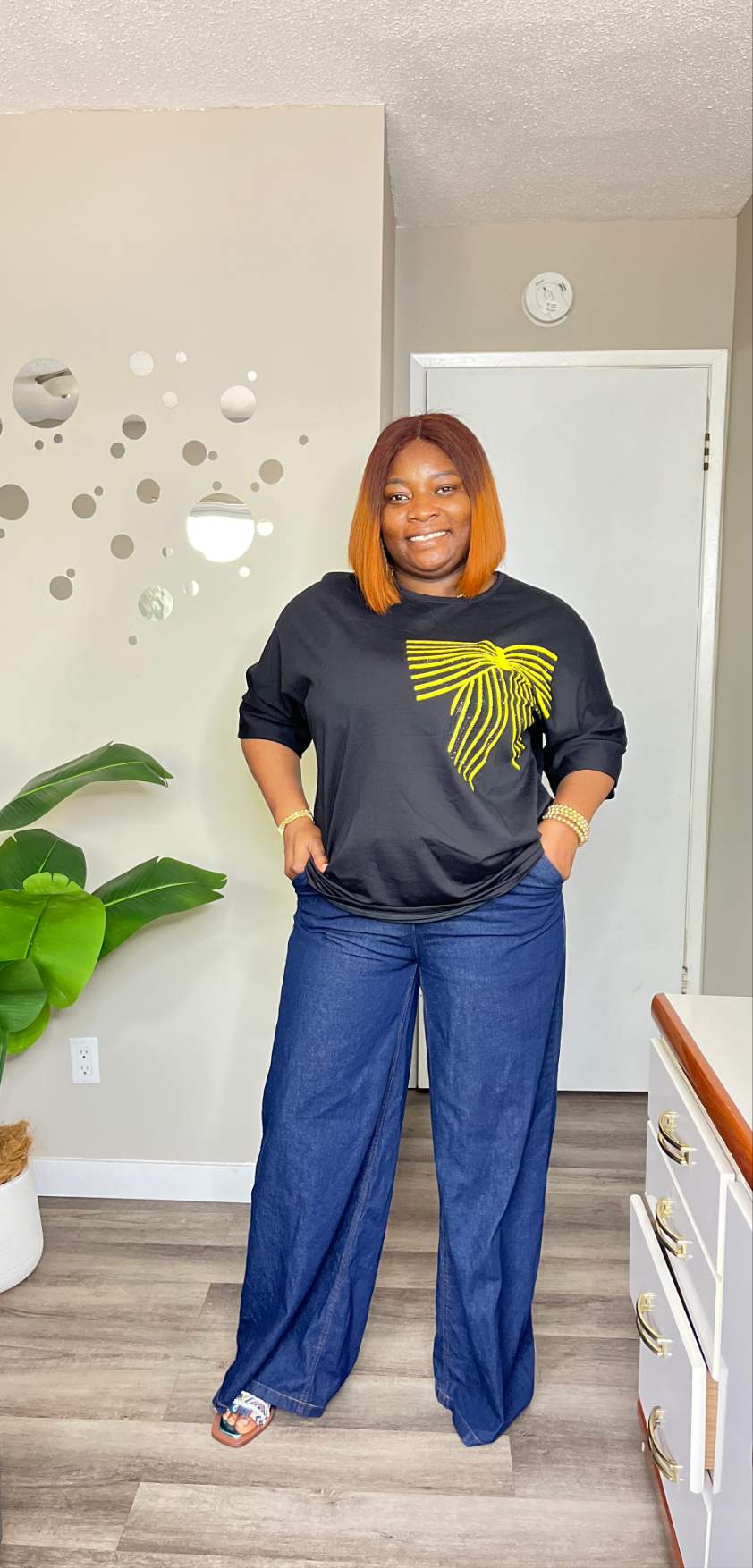 Black top with yellow bow