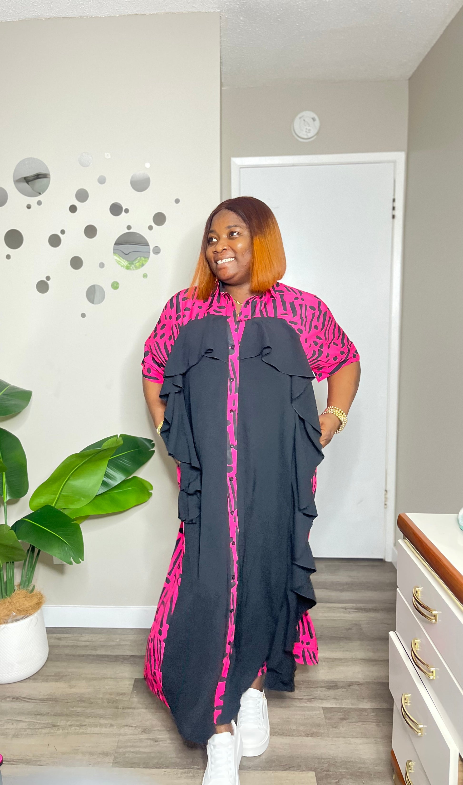 Step out in style with this playful frill detail shirtdress. Its charming frill accents add a flirty touch to the classic shirtdress style, making it perfect for casual outings or sunny weekend adventures. Lightweight and easy to wear, it combines comfort with a fun, feminine vibe you'll love.